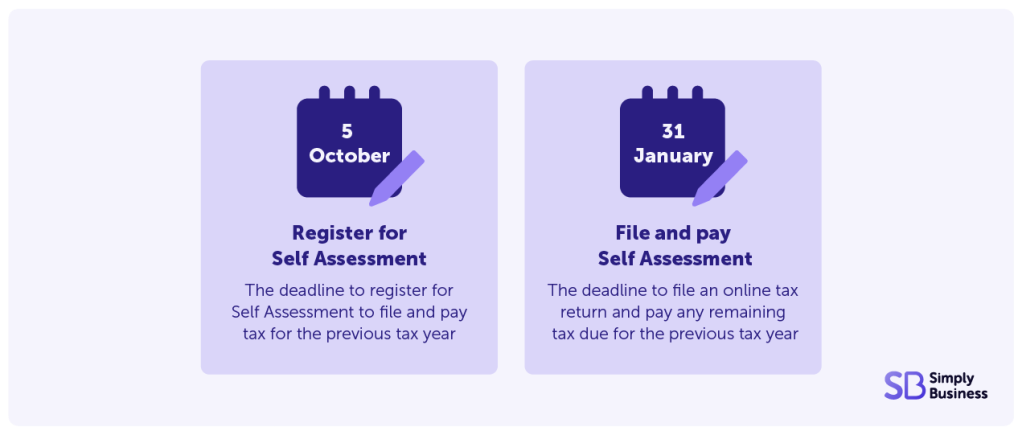 The deadline for telling HMRC that you’re self-employed is 5 October. This is so that they know you need to complete a tax return the following year.